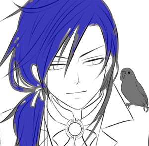 次に髪レイヤーの下に一枚新しいレイヤーを作り、髪を塗っていきます。 隙間ができないように周りの部分だけ塗ります。