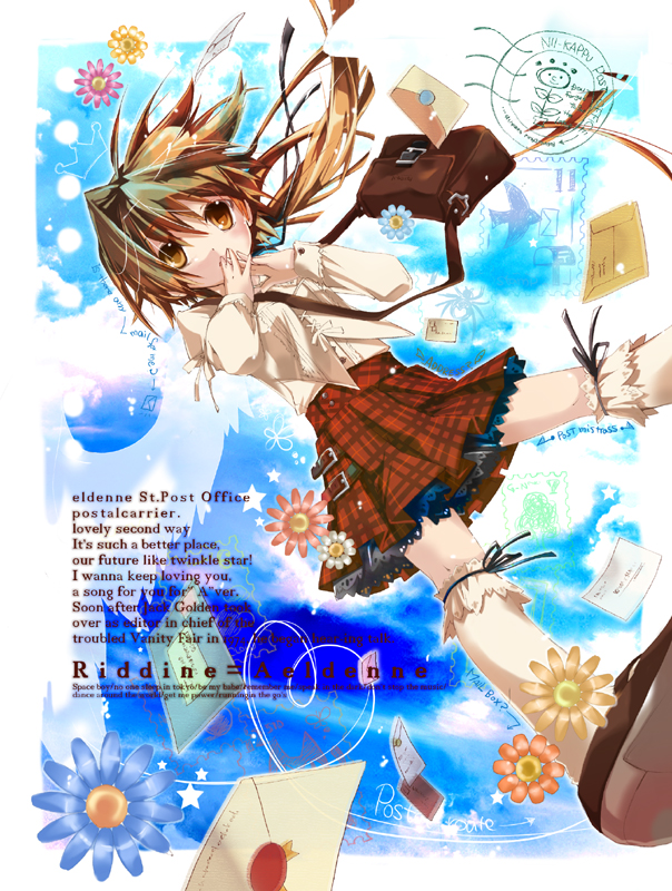 背景のらくがきも、全体を見て位置や量を調整したりしつつ、 粗捜しをしますが、なんというかまとまりに欠けていたので 秘技・文字入れに頼ることにしました。 視点の重点が定まるので、絵がぐっと締まります。 文章は適当に引用です。英語ならいいや。