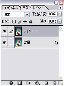 レイヤー1の方を選択して、ソフト左上のメニューから【イメージ】→【色調補正】→【レベル補正】を選ぶ。