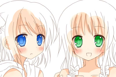 塗りに入る前に、頬と目の色を変えました。 今は色分けしたレイヤーをすべて非表示にしている状態です。