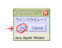 窓をクリックすると「ウィンドウビュー?」と表示されるのでOKをクリック、 その後「新窓表示」はOKではなくCancelを選びます。