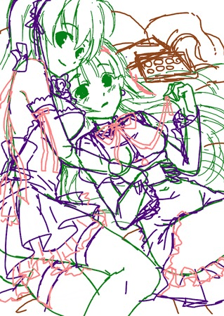 大体の色を置いてみる程度ですが、これが線画を描く時に重宝したりします。