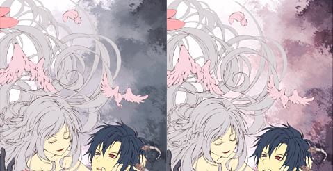 明るい色には乗算で、暗い色にはオーバーレイかスクリーンのような感じで